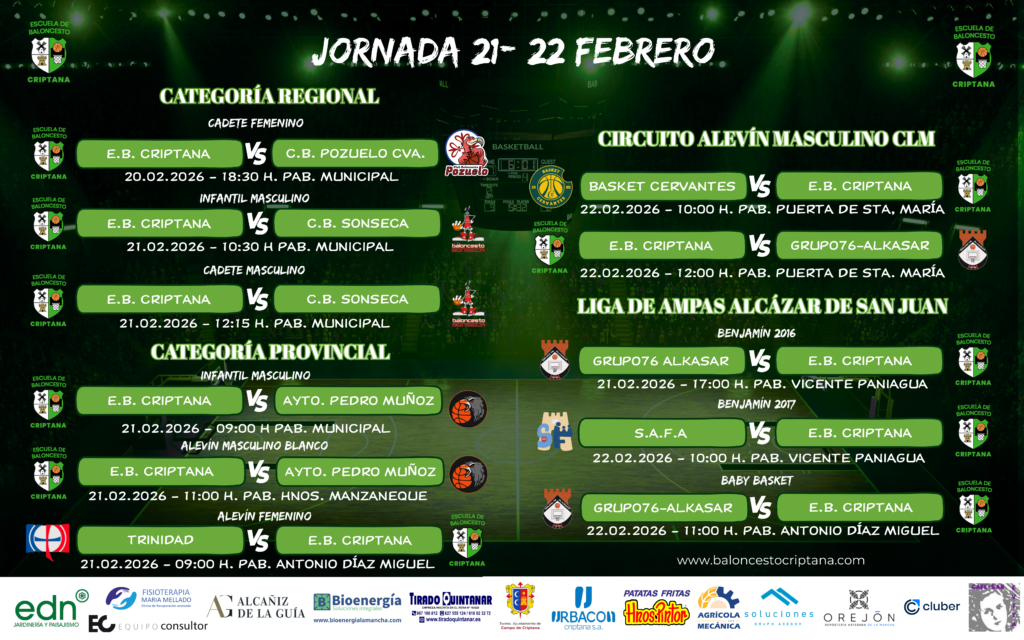 Por fin volvían los partidos tras las jornadas con inclemencias meteorológicas, con buenos partidos por parte de nuestros equipos. Arrancaba el Cadete Femenino Regional con el primer partido de la segunda fase disputado el pasado viernes ante Pozuelo de Calatrava. Un encuentro en el que desde el primer cuarto las criptanenses pusieron tierra de por medio […]