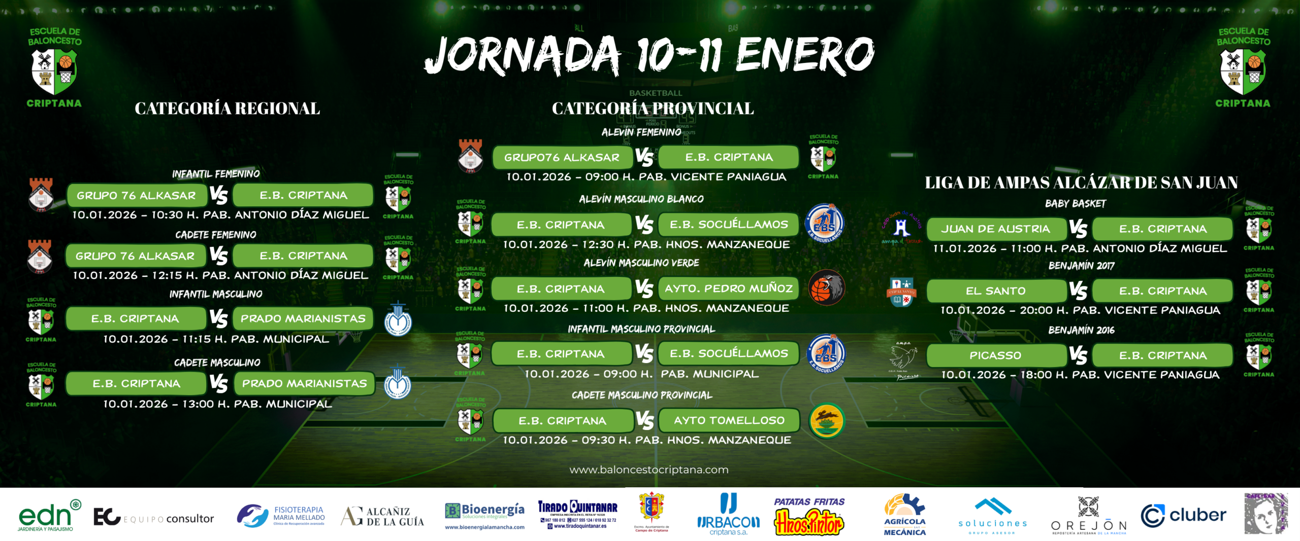 Comienza el año 2026 con todos nuestros equipos en juego, desde Baby Basket hasta Cadete en una gran jornada con partidos importantes.